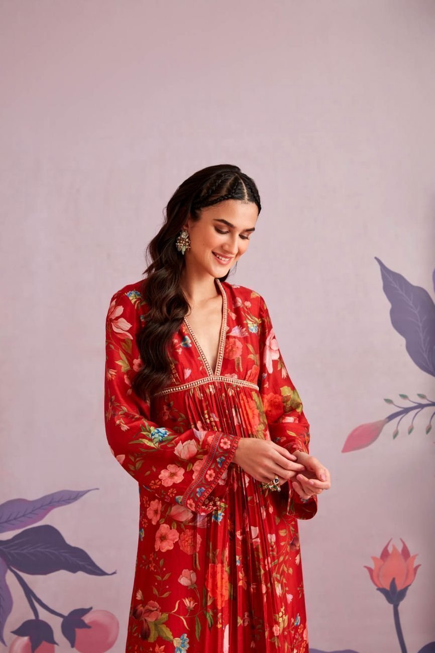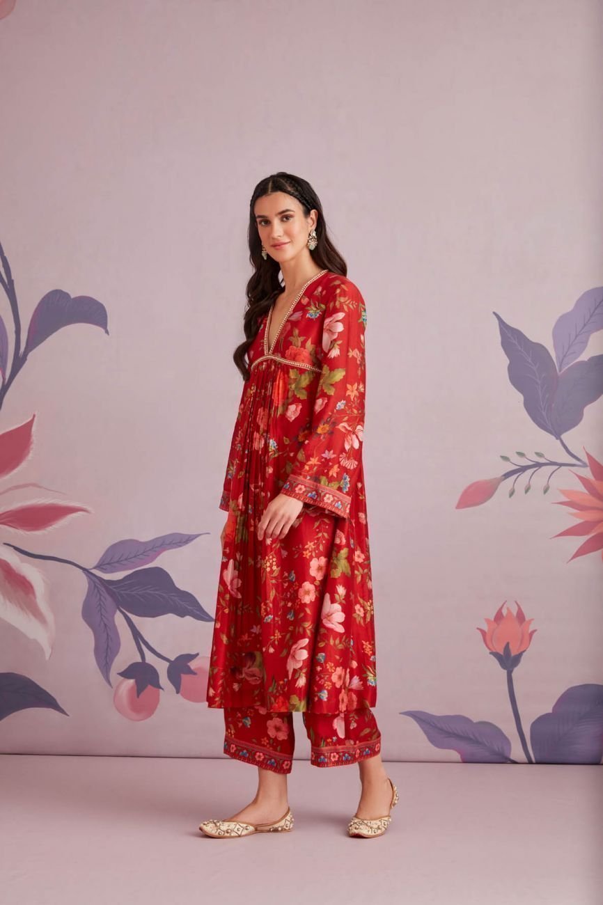 Red Oleander Kurta Set